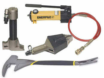 主要用于卷簾門、金屬防盜門的破拆作業。包括液壓泵、開門器、小型擴張器、撬棍等工具。其中開門器最大升限為380mm,最大挺舉力為60kN |
