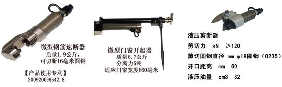 汶川大地震后,各類的救援隊都在反應救援過程中工具使用的局限性。在狹小的空間里現有的救援工具由于質量重、幾何尺寸大、雙手操作、需要使用較大的動力源等問題,給使用工具造成了很多障礙。 單油管、單手操作、重量輕、微型化的液壓救援工具是我公司的成果,它操作簡單可以在狹小空間內使用。 該工具以手動泵或電動泵為動力,重量輕,作用力大,效率高,簡單的單手操作模式,使救援人員在窄小空間里使用單手更加靈活的使用工具變的可能。 噪音低