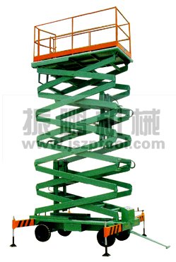 升降機的機械結構一般由底座、臂架和工作臺三部分組成。底座采用相應強度鋼板焊接而成;臂架為剪撐鉸鏈式垂直升降,采用高強度無縫矩形管制作,強度高、外形美觀;工作臺能幾人同時操作,并設有安全護欄和低壓操縱屏,操作安全可靠。